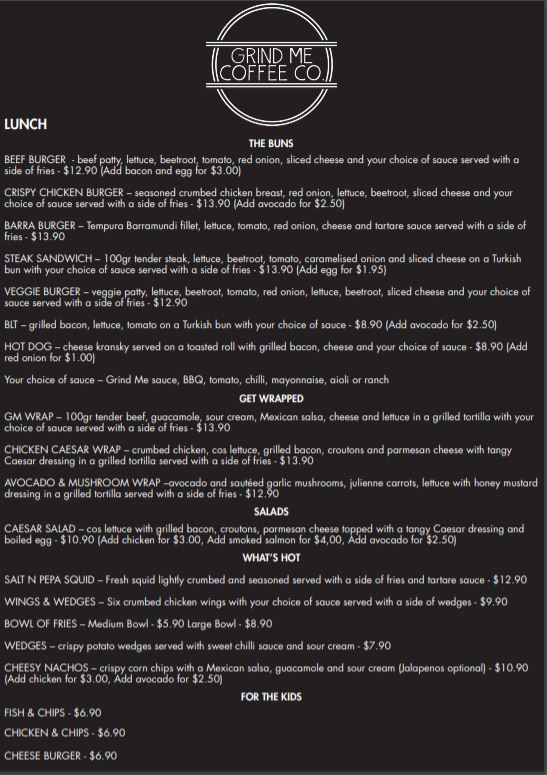 Nestled in the heart of Miami, QLD, Grind Me Coffee Co. promises an exceptional café experience. With a menu that spans both hot and cold selections, coffee lovers will delight in the diverse offerings. From a refreshing Iced Matcha at A$7.50 to a classic Latte for A$6.50, each beverage is crafted to perfection.